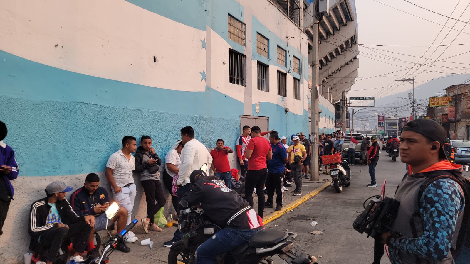 ¡Como pan caliente! Interminables filas hacen fanáticos de los equipos Olimpia y Olancho F.C. para comprar boletos para la gran final de la Liga Nacional de fútbol este próximo domingo.
