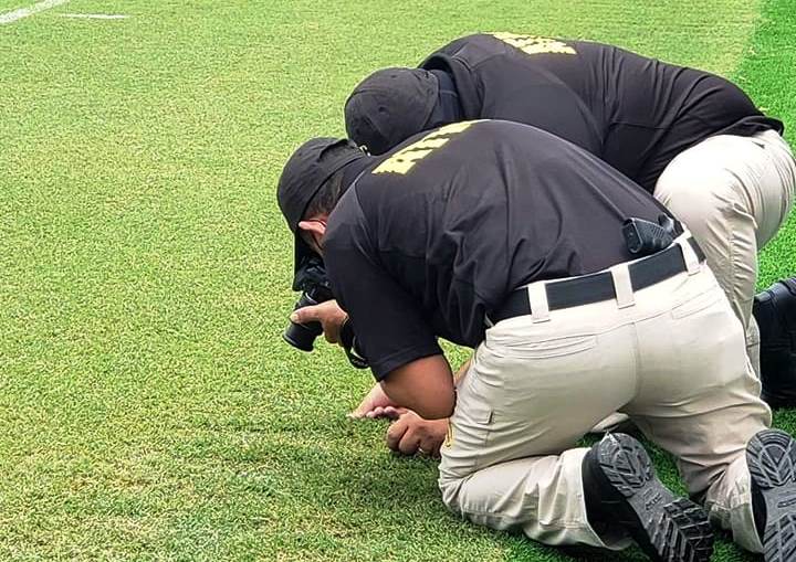 Es así que equipos de la ATIC, coordinados por agentes de investigación de los delitos en contra de la administración pública y patrimonial, dan cumplimiento a las labores de requisa a la cancha, junto a técnicos en procesamiento de la escena del crimen y personal de ingeniería.