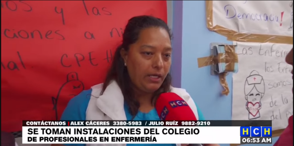 Las y los profesionales de la enfermería se toman las instalaciones de su colegio en Tegucigalpa ante la anuencia de convocar a elecciones para elegir a sus autoridades.