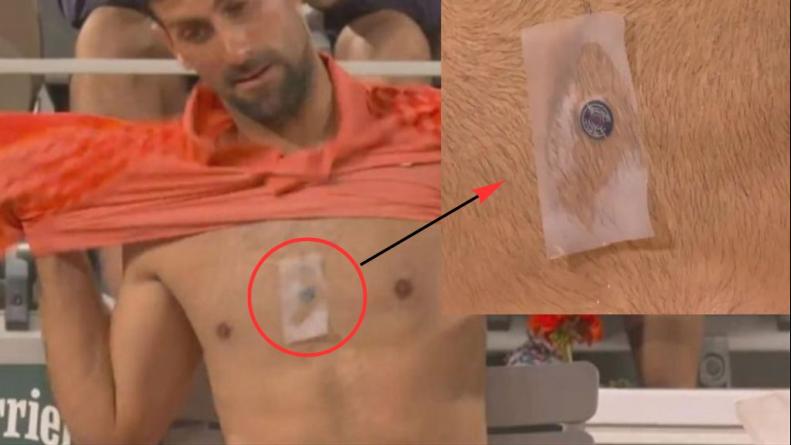 Sin embargo, el tenista de 36 años volvió a convertirse en noticia por una curiosa imagen que se produjo durante el partido. Cuando se sacó la camiseta para higienizarse entre ‘game y game’, donde mostró un chip que tenía pegado con una cinta en medio del pecho.