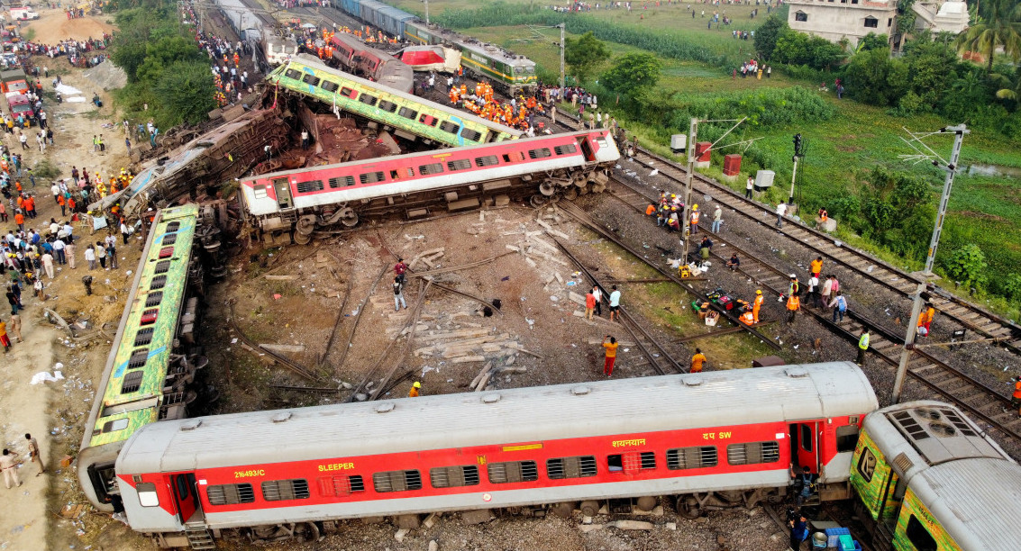 Vagones retorcidos se apilan unos encima de otros y líneas de cadáveres yacen junto a las vías en el este de India, donde los primeros rayos de sol muestran el horror de uno de los accidentes ferroviarios más mortíferos en la historia del país.