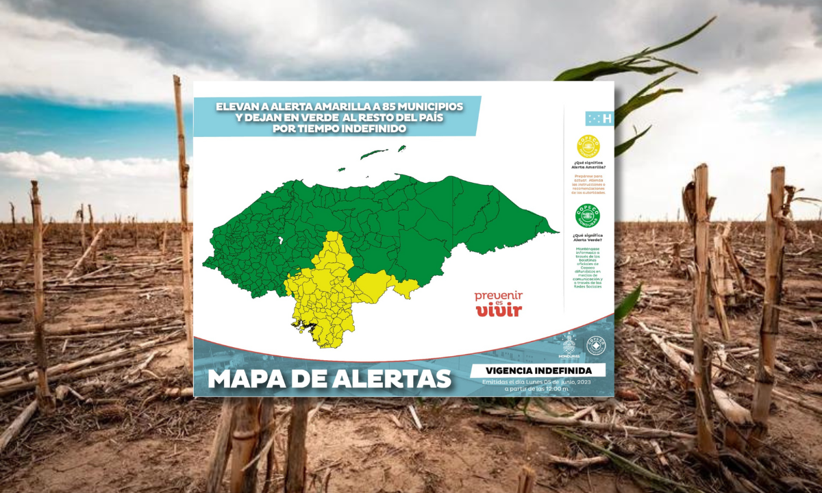 La Secretaría de Estado en los Despachos de Gestión de Riesgos y Contingencias Nacionales (Copeco), declara Alerta Amarilla por sequía meteorológica en 85 municipios del Corredor Seco por tiempo indefinido, y Alerta Verde en todo el país.