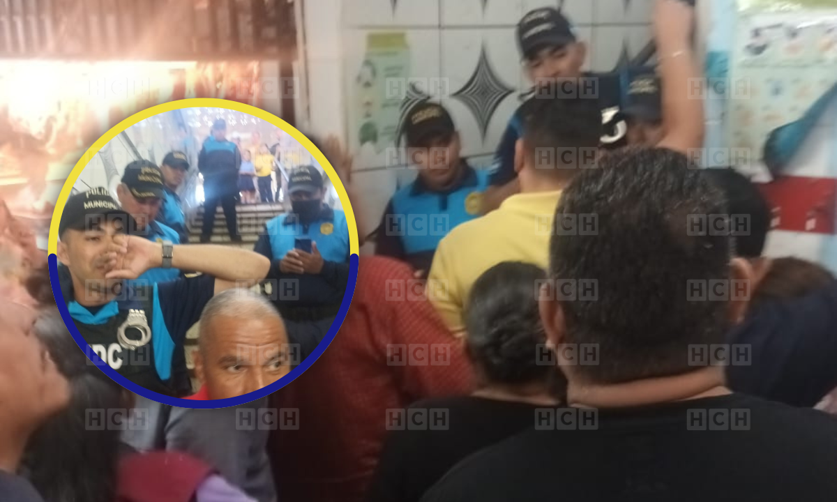 Locatarios del mercado San Isidro de Comayagüela protagonizan tremendo zafarrancho con agentes de la policía municipal de la alcaldía del Distrito Central.