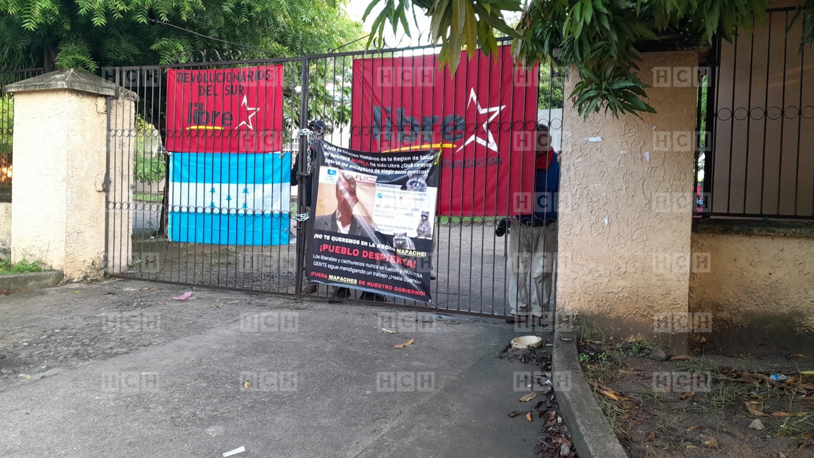 Durante este día se comunicó que no habrá consultas medicas, tras la imposición de la bandera de Honduras y la del partido Libre en el portón principal.