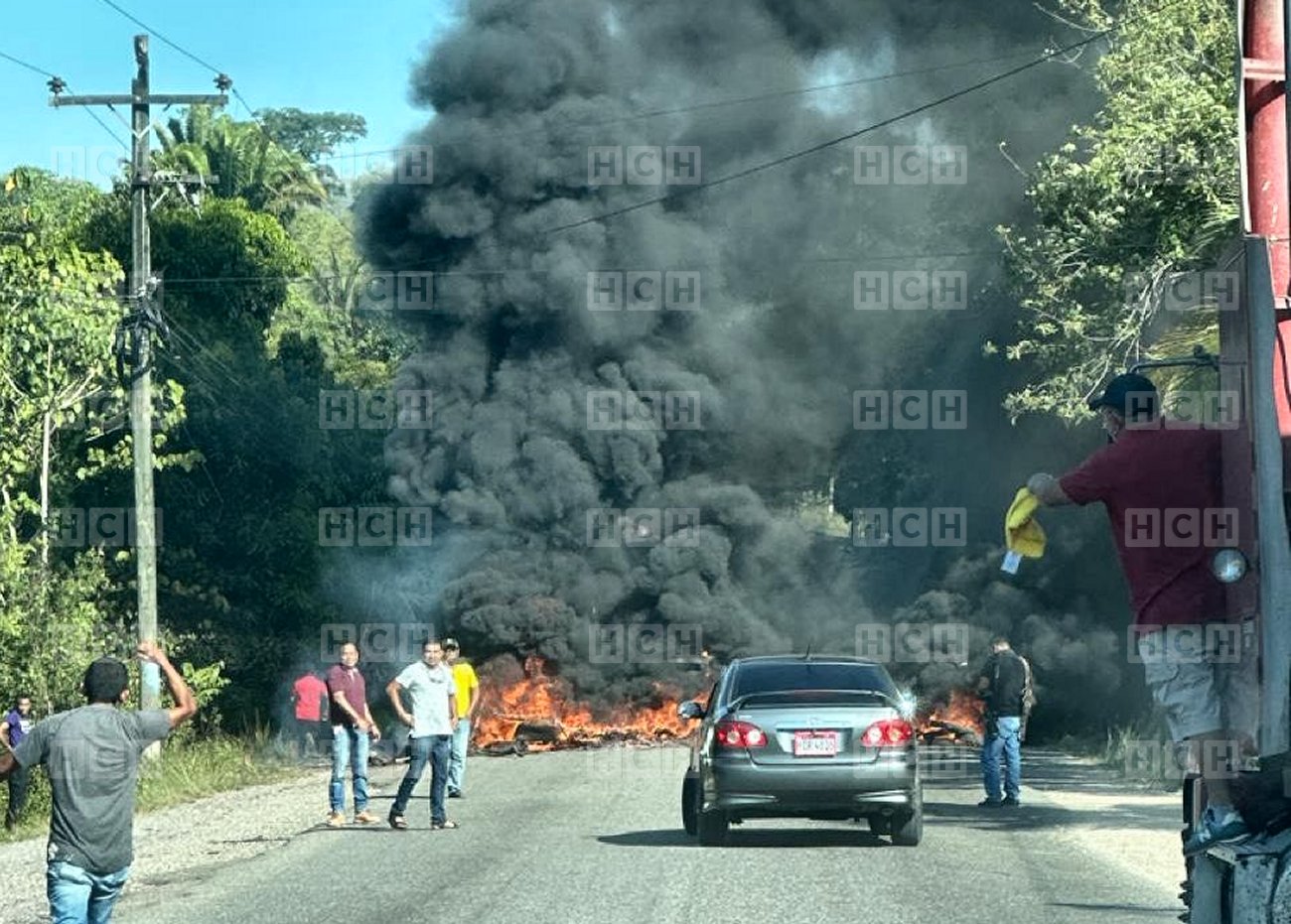 Cansados de los constantes e incansables apagones eléctricos, pobladores del Bajo Aguán protestan en la carretera entre los departamentos de Colón y Atlántida.