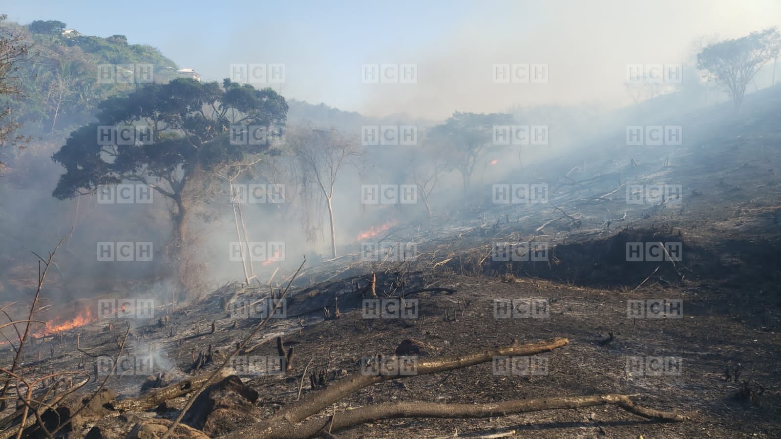 Un intenso incendio forestal arrasó con varias hectáreas de bosque en el municipio de José Santos Guardiola, departamento de Islas de la Bahía.