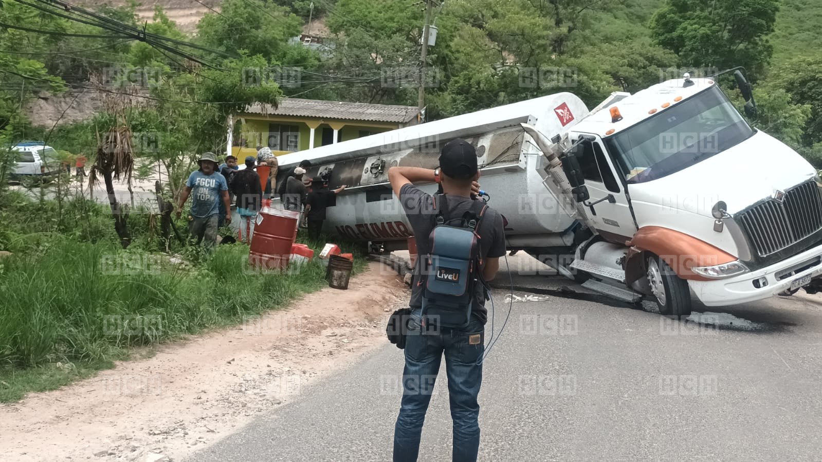 Una pesada rastra cargada de diésel por casi provoca una tragedia en la carretera hacía la aldea Santa Rosa, salida a la zona sur del país, Tegucigalpa.