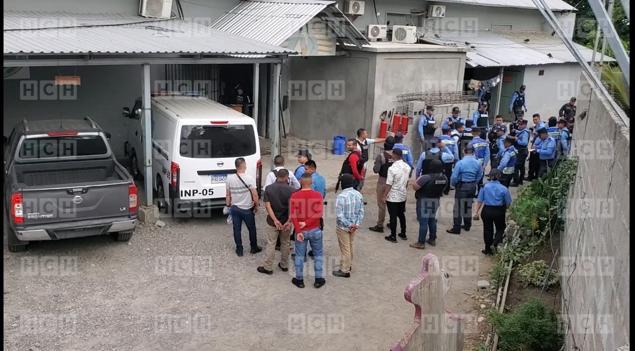 Agentes de la Policía Nacional realizan una requisa en el centro penal del barrio Inglés de la ciudad de La Ceiba, departamento de Atlántida.