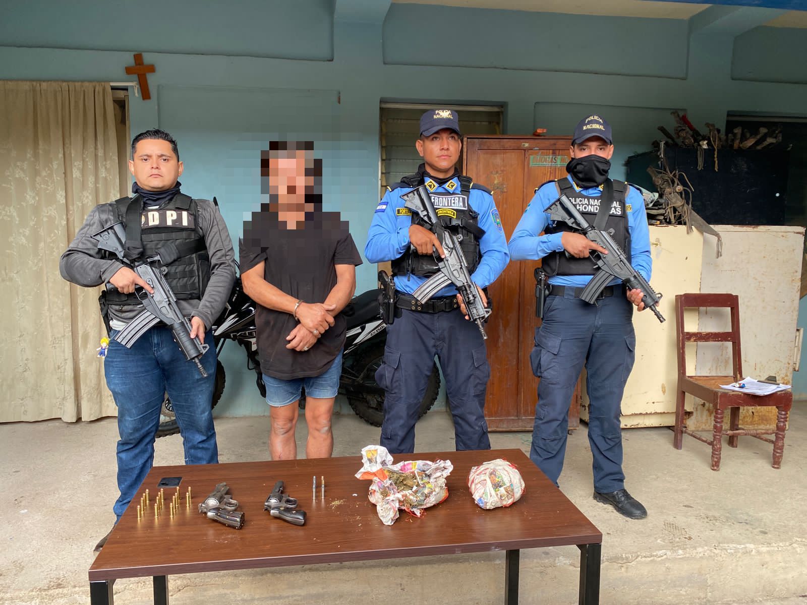 La Dirección Policial de Investigaciones (DPI) en apoyo con la Dirección Nacional de Prevención y Seguridad Comunitaria (DNPSC), desarrollaron la detención y ubicación del sujeto en la aldea Arenales del municipio de Chinacla, La Paz.