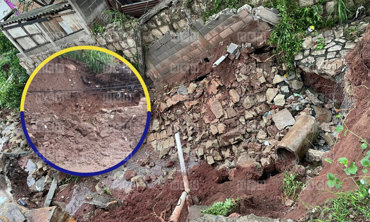 Una anciana hoy lamenta que un muro de contención de su vivienda cedió, algo que no le permitió dormir con tranquilidad y hoy la mantiene en incertidumbre.
