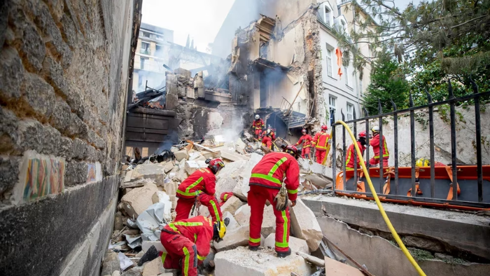 El edificio, situado en el distrito V de la capital y que albergaba en los locales una escuela privada de moda, se derrumbó tras una fuerte explosión de origen todavía no aclarado, aunque se especula con que pudo deberse a una fuga de gas.