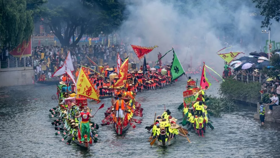 La festividad se celebra con eventos deportivos como carreras de botes dragón y paseos en bote dragón, como aquí en la ciudad china de Foshan.