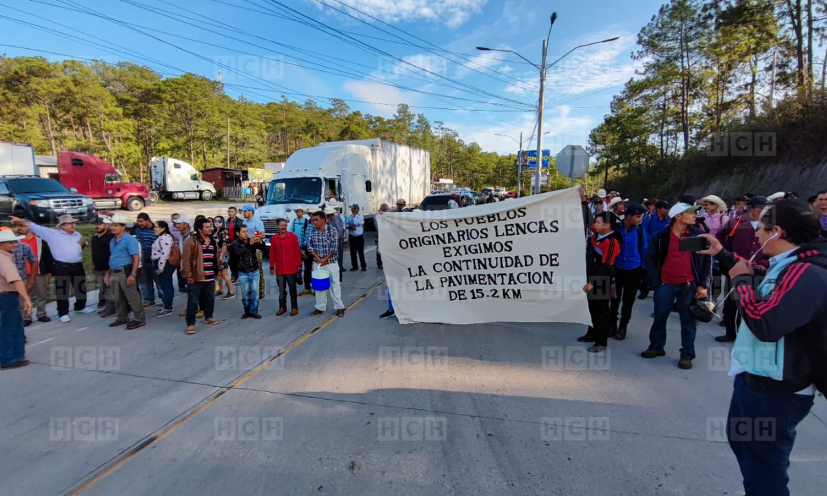 Más de 800 pobladores de municipios del departamento de Lempira, protestan en la carretera internacional CA-4, justamente en el municipio de Santa Rosa de Copán por poseer carreteras en pésimas condiciones.