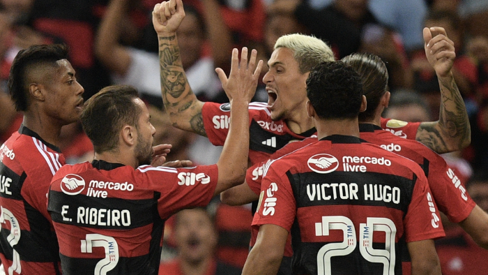 El artillero Pedro (9), el defensa Léo Pereira (30), el extremo Bruno Henrique (42) y el volante Victor Hugo (55) sepultaron a los ecuatorianos en Rio de Janeiro.