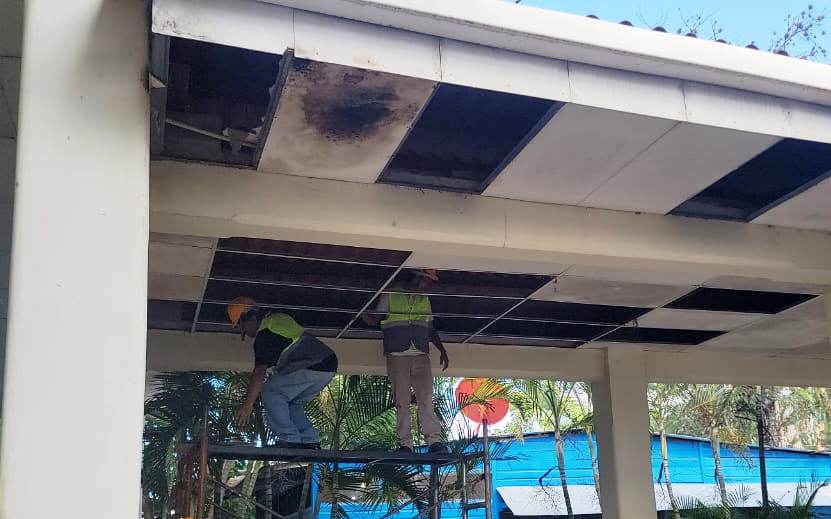 Las acciones por parte de las autoridades, iniciaron en todo el corredor del hospital y todo el trabajo que se le está haciendo, es el desmontaje del cielo falso y la flejeria, posteriormente se procederá a desmontar las láminas y luego colocar las mismas, para evitar las inundaciones en el dichas instalaciones.