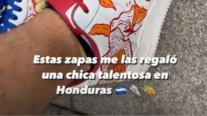 «Ando rockeando los tenis que me hizo esta chica en Honduras. Vean qué cool están. Están chidos, están perrillos», manifestó.
