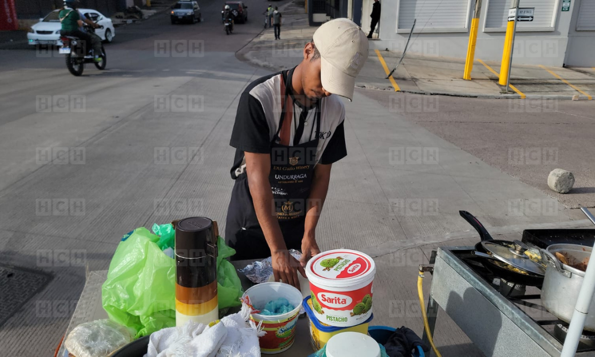Es en una de las calles del bulevar Morazán de Tegucigalpa que el joven de 21 años vende burritas, baleadas y desayunos típicos, su arduo trabajo lo motiva para cumplir su sueño de viajar al extranjero y allí establecerse.