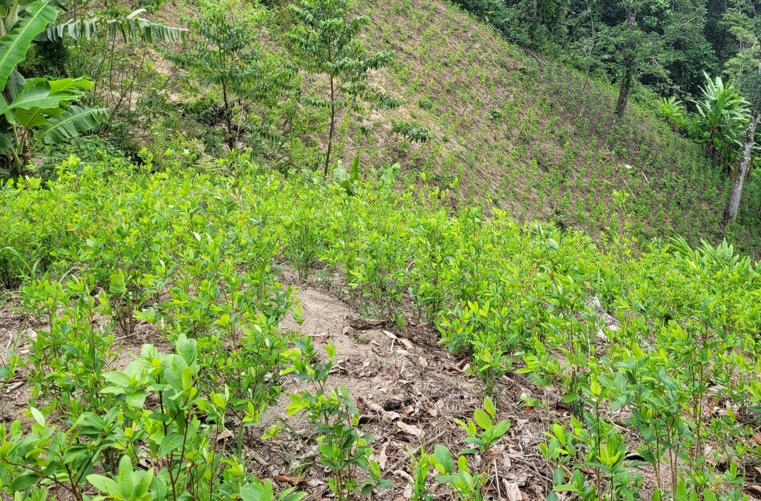 Durante el despliegue de la operación los efectivos policiales lograron asegurar una plantación con una extensión territorial de 12 manzanas de tierra, que cuenta con 96,000 arbustos de supuesta hoja de coca.