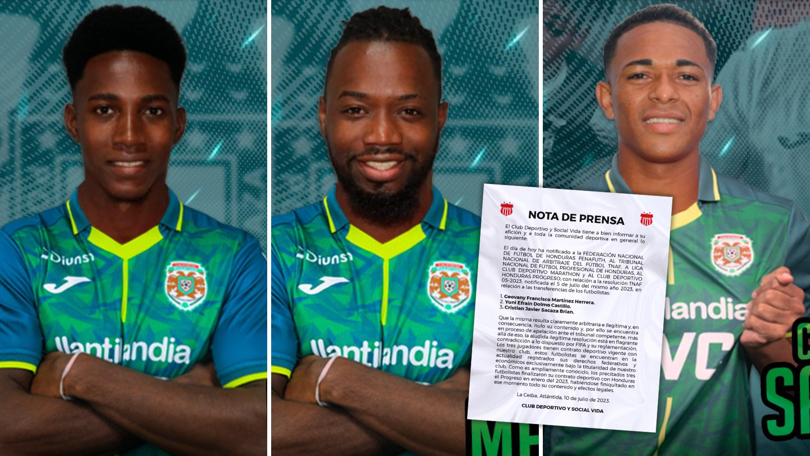 “El Club Vida informa que el día de hoy ha notificado a la Fenafuth, al TNAF, a la Liga Nacional de Honduras, al Marathón y al Honduras Progreso, con relación a la resolución TNAF 05-2023, notificada el 5 de julio del mismo 2023, en relación a las transferencias de Geovany Martínez, Yuni Dolmo y Cristian Sacaza, que la misma resultad claramente arbitraria e ilegítima”, inicia diciendo el comunicado.