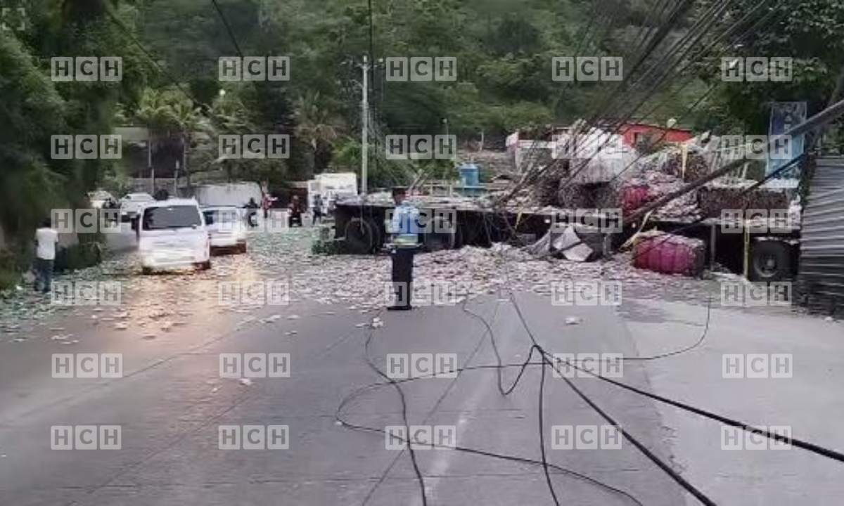 Una pesada rastra cargada de material reciclable volcó en la carretera que de Tegucigalpa dirige hacía la zona sur del país, justamente en el kilómetro dos, ocasionando un pesado tráfico vehicular y pérdidas materiales.