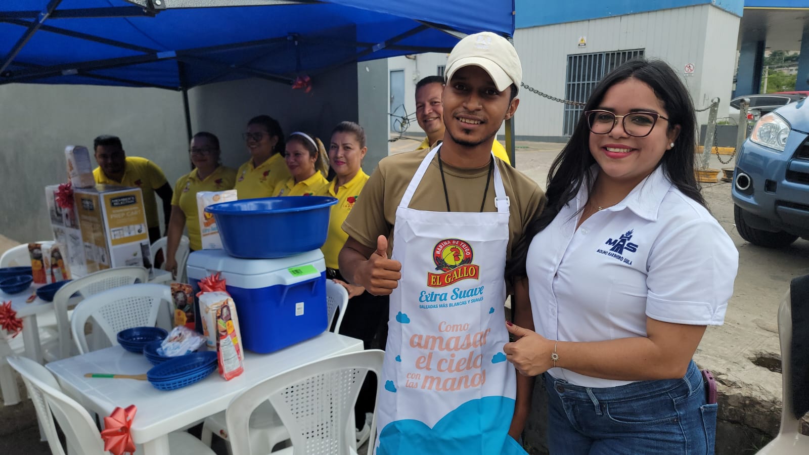 Molino Harinero Sula con sus marcas La Rosa y El Gallo junto al gigante de las tres letras, HCH, entregaron un enorme kit a un joven universitario que vende baleadas en un bulevar capitalino.