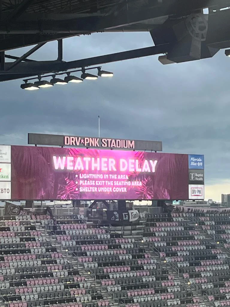 La presentación del astro del fútbol argentino como el nuevo miembro del Inter Miami empezará con unas horas de atraso por el mal tiempo, según se informó a través de una pancarta del estadio DRV PNK de Fort Lauderdale.