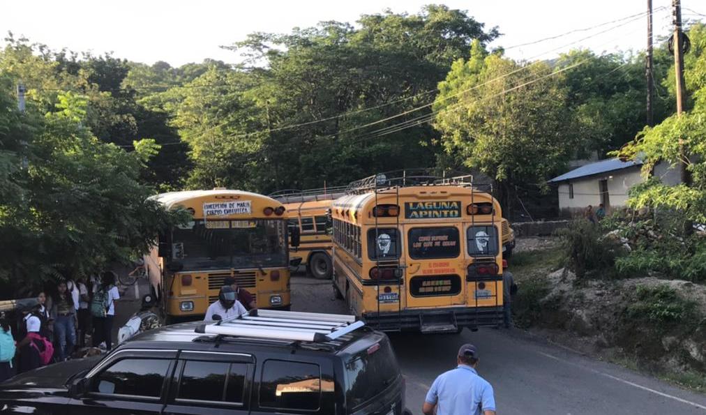 Los transportistas del municipio de El Corpus, departamento de Choluteca, protestan ante la nueva llegada de unidades de buses de forma ilegal.