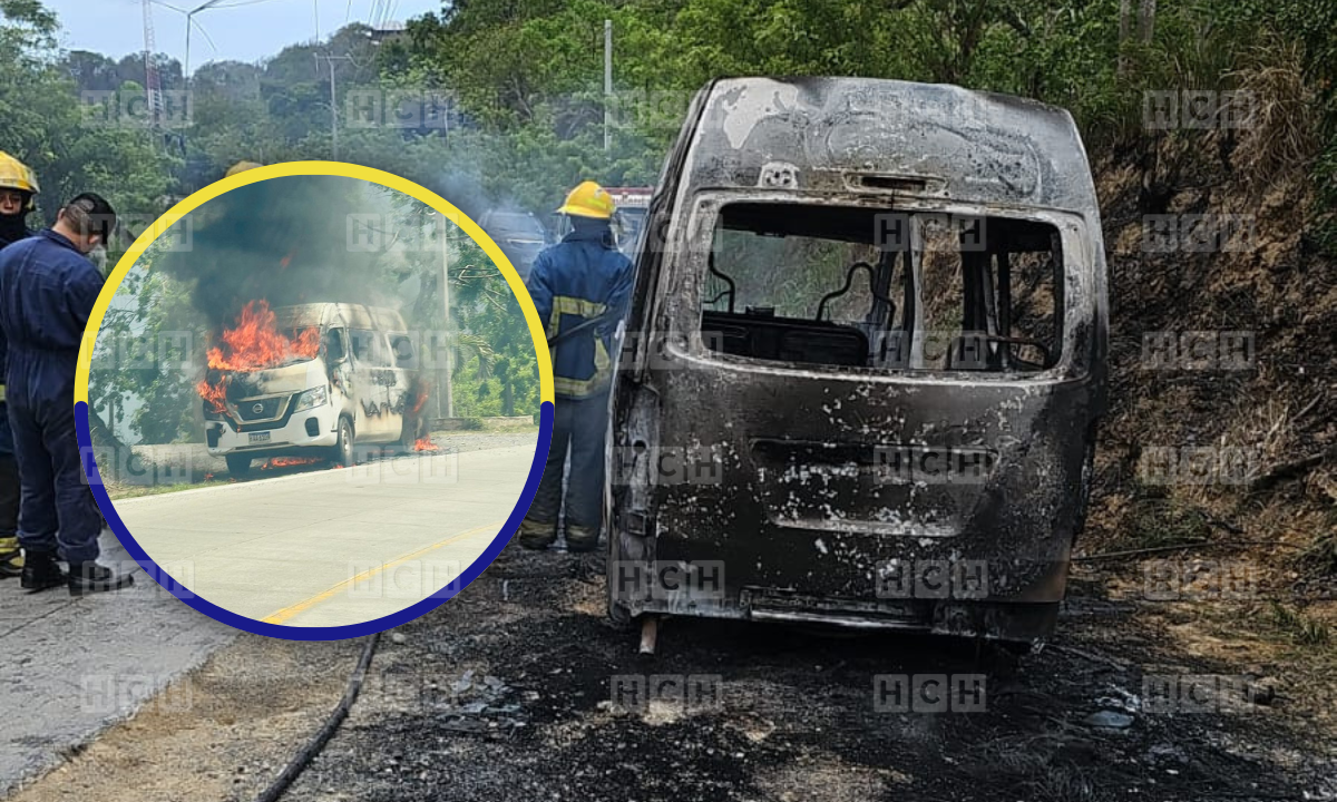 Un microbús cargado de pasajeros se prendió en llamas en el sector de Plan Grande, municipio de Roatán, departamento de Islas de la Bahía.