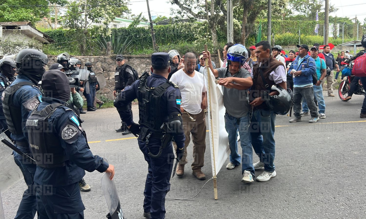 Agentes de la Policía Nacional procedieron a desalojar con el uso de la fuerza a los protestantes que mantenían tomada la carretera de El Hatillo y otras comunidades, municipio del Distrito Central.