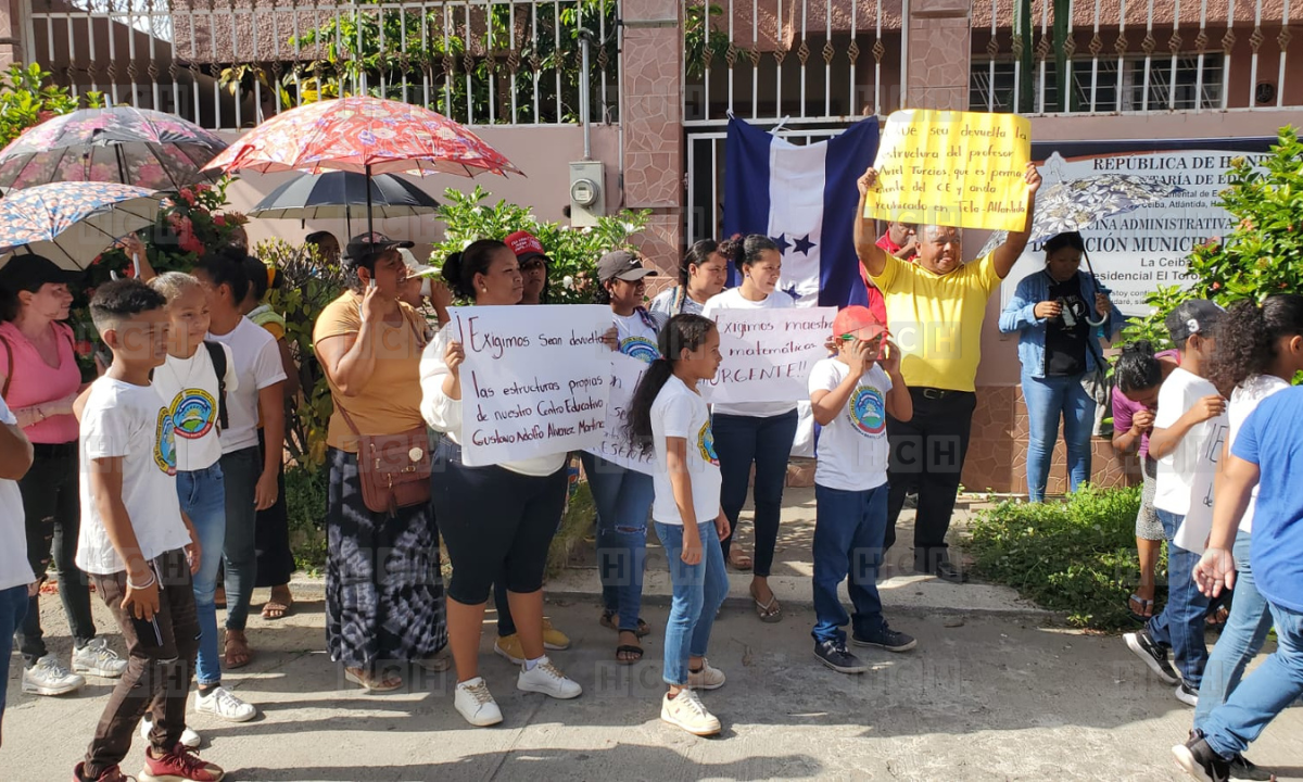 Padres de familia y estudiantes del centro educativo básico «Gustavo Álvarez Martínez» se tomaron la Dirección Departamental de Educación ubicada en la ciudad de La Ceiba, departamento de Atlántida, para exigir el nombramiento de cuatro maestros.