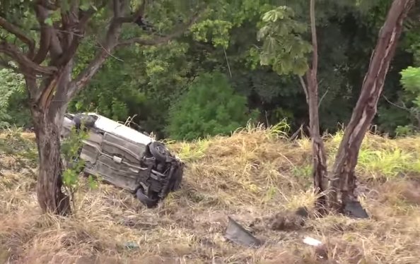 Un accidente de tránsito tipo volcamiento por casi termina en tragedia en las cercanías de la represa Los Laureles de la capital.
