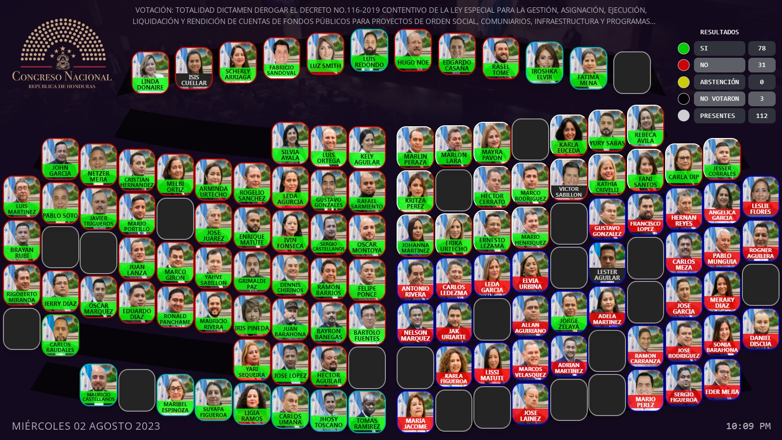 En el Congreso Nacional hay polémica tras la derogación del decreto 116-2019, que contiene el denominado Fondo Departamental. Luis Redondo mencionó que se necesitaban 86 votos para derogarlo, sin embargo, aprobaron la derogación con 82 votos.