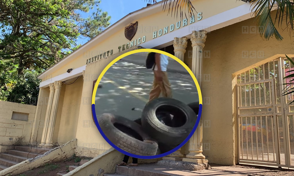Los estudiantes del Instituto Técnico Honduras de la capital protestan en sus instalaciones por la remoción de un maestro de educación física.