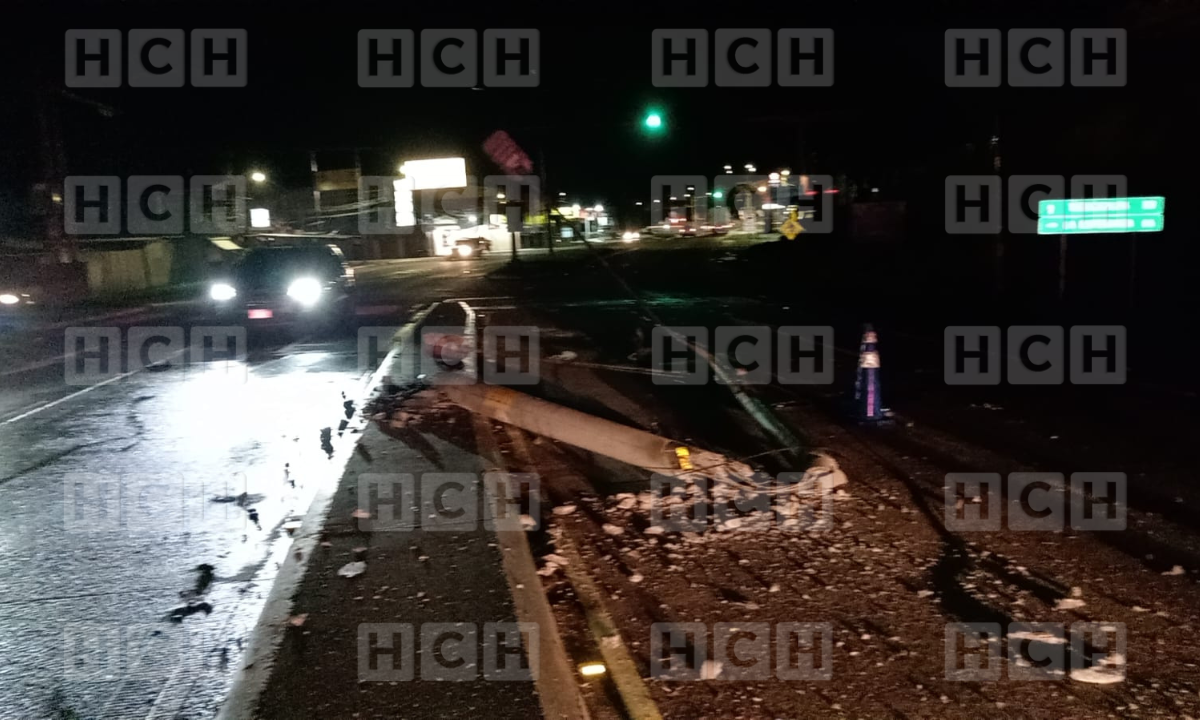 Un poste de concreto se encuentra caído en la carretera CA-5 a la altura de Siguatepeque.