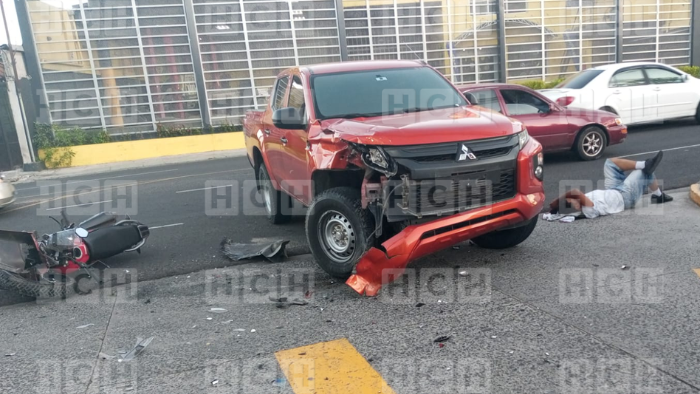 Esta tarde se produjo un fuerte choque entre una motocicleta y una lujosa camioneta.
