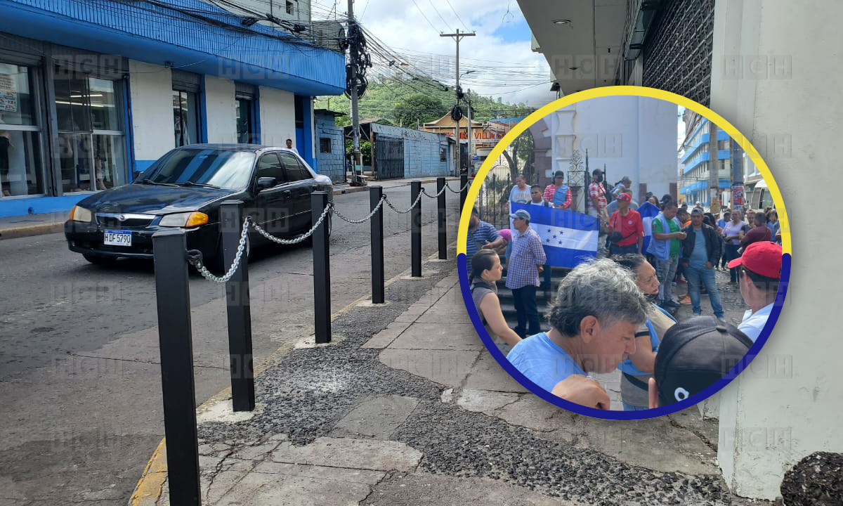 Vendedores ambulantes del Centro de Tegucigalpa protestan para exigir la eliminación de tubos y cadenas que impiden instalar sus puestos sobre las aceras.
