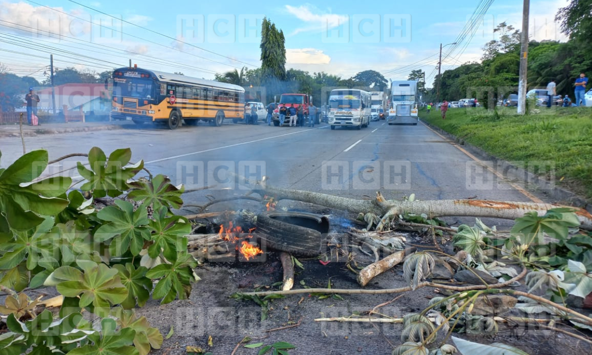 Una fuerte protesta cortó el flujo vial en la calle que lleva de Puerto Cortés hacia San Pedro Sula.
