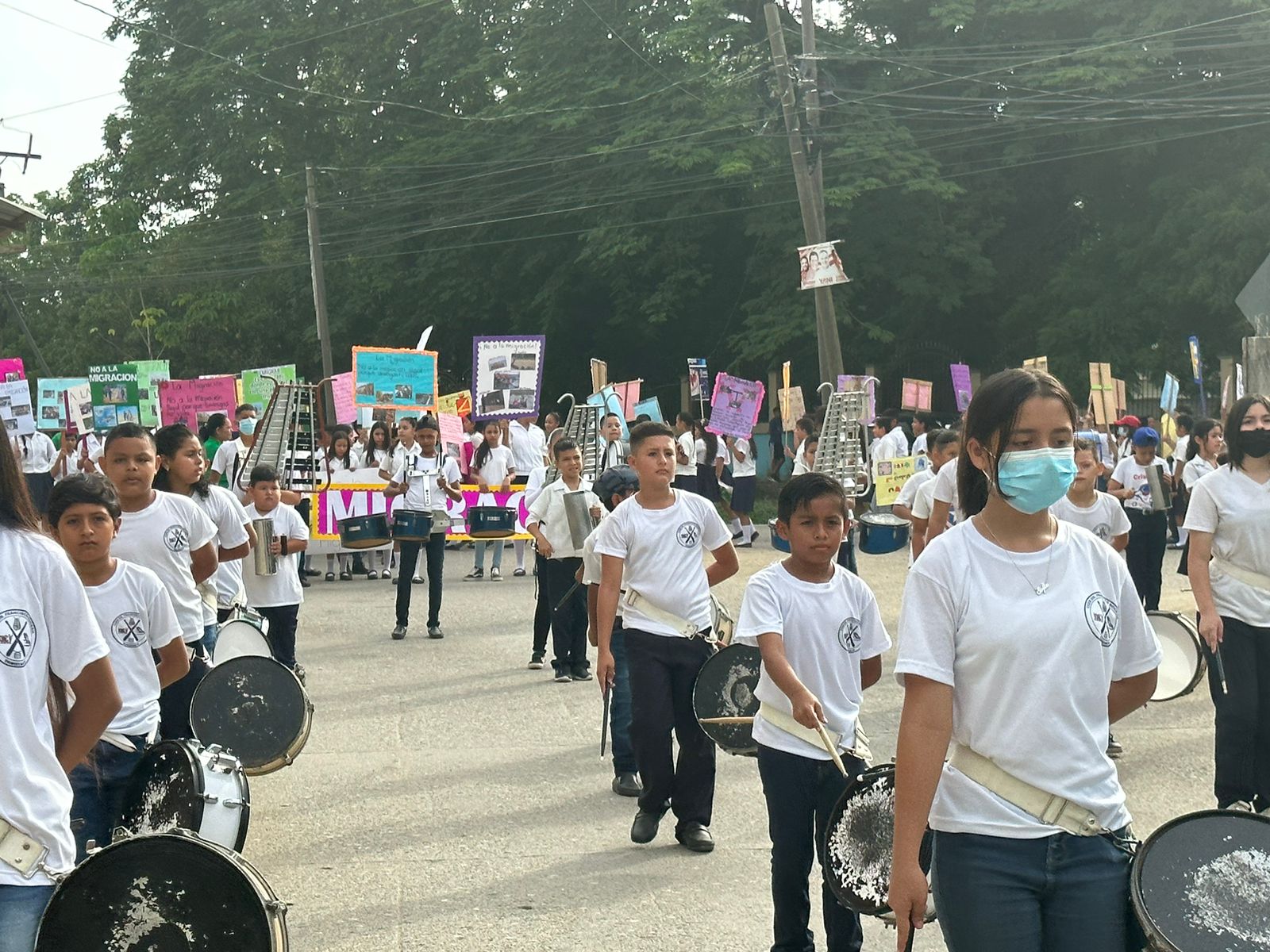 Los niños del municipio de Quimistán, departamento de Santa Bárbara, salieron este día a las calles para exigir un alto a la migración irregular.