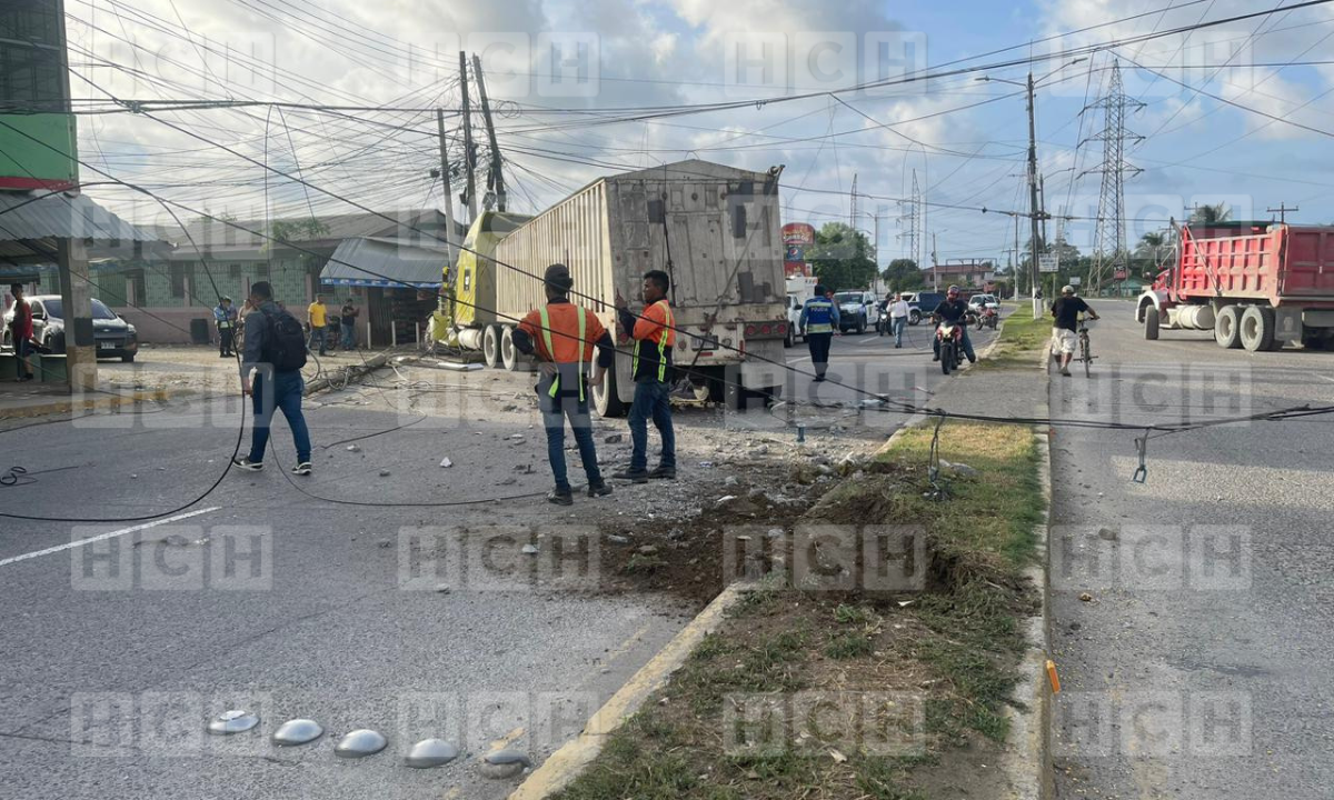 La pesada rastra se saltó la mediana chocando contra un negocio.