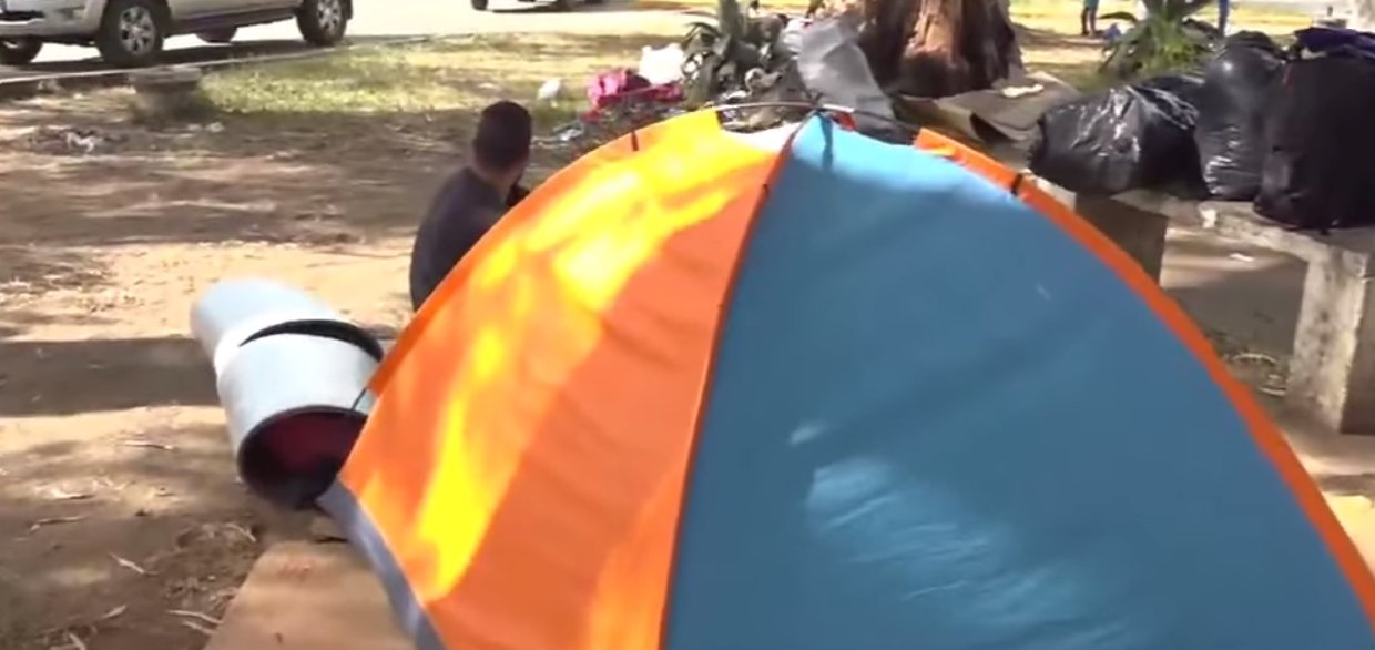 Son decenas de familias que acampan en las calles y aceras de la ciudad de Danlí mientras esperan sus documentos para seguir su ruta.