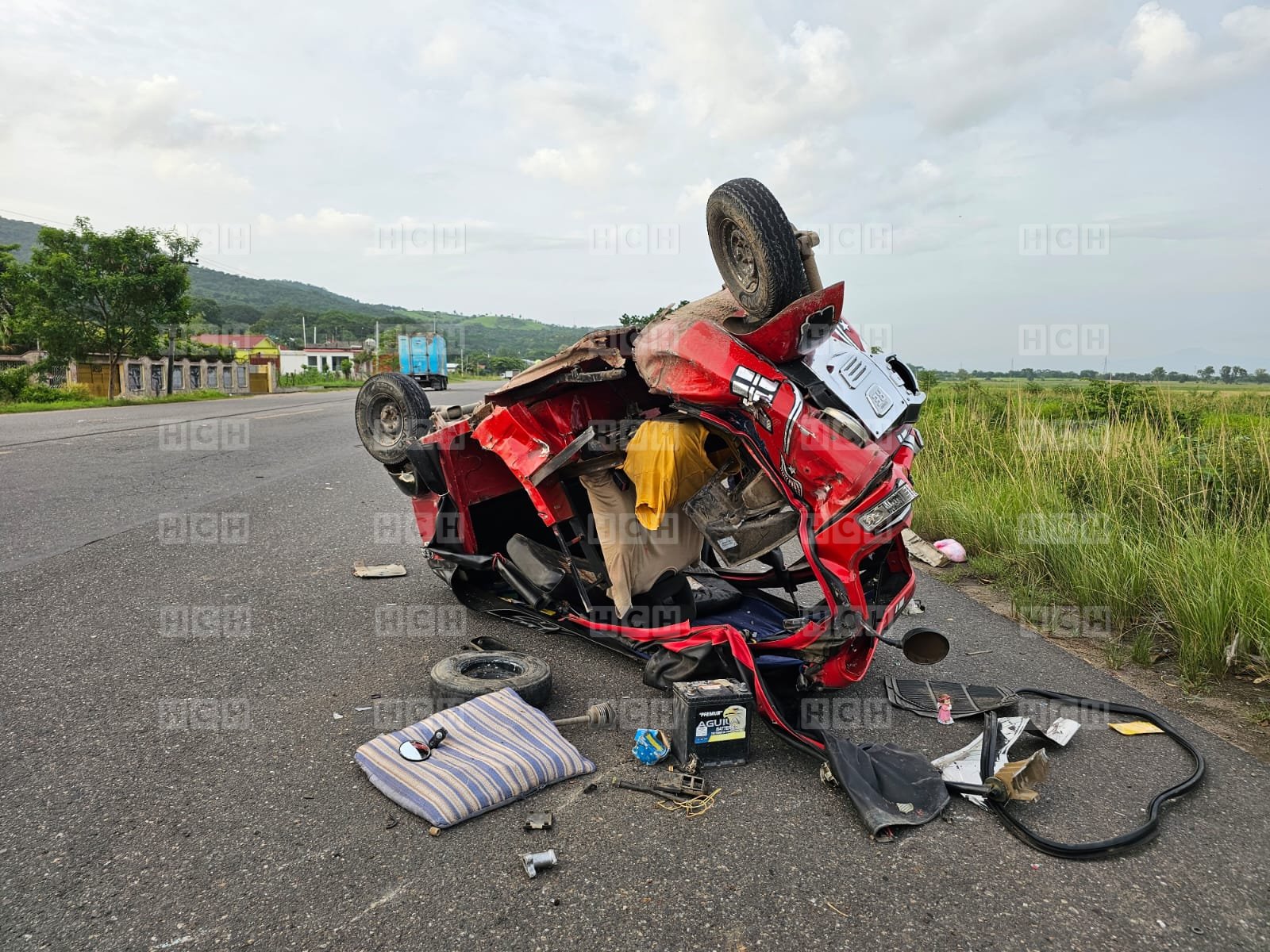 Los hechos se dieron cuando el «mototaxista» se desplazaba por la carretera abierta, pero otro pesado camión le quitó el derecho a vía, lo que ocasionó que el chofer de la unidad móvil de tres ruedas hiciera una maniobra y terminó volcado.
