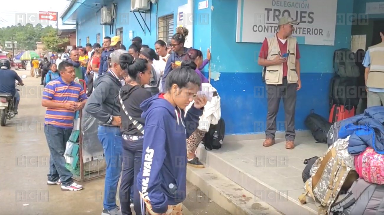 Miles de inmigrantes colapsan la oficina de migración del municipio de Trojes, departamento de El Paraíso, donde solo hay tres ventanillas habilitadas y se emiten más de 2 mil salvoconductos diarios.