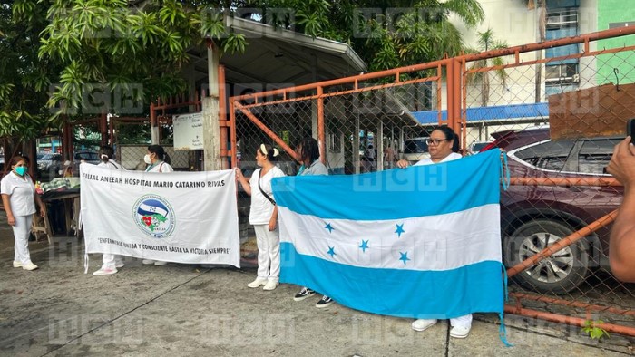 Las enfermeras profesionales del hospital Mario Catarino Rivas de la ciudad de San Pedro Sula, departamento de Cortés, protestan este día para exigir el cumplimiento de sus derechos que ya fueron ganados.