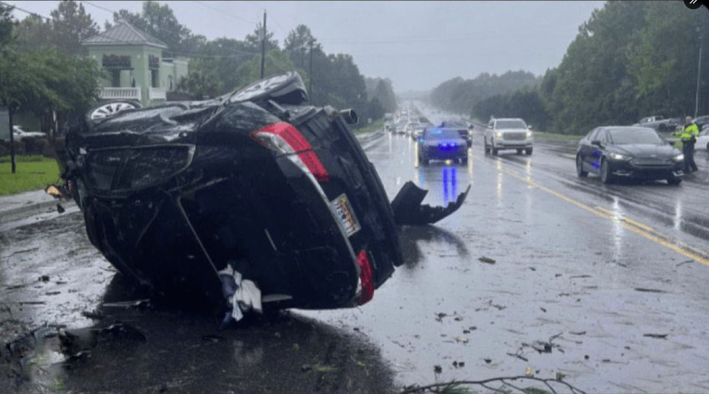 El huracán Idalia volcó un automóvil en una carretera en las afueras de Charleston, Carolina del Sur.