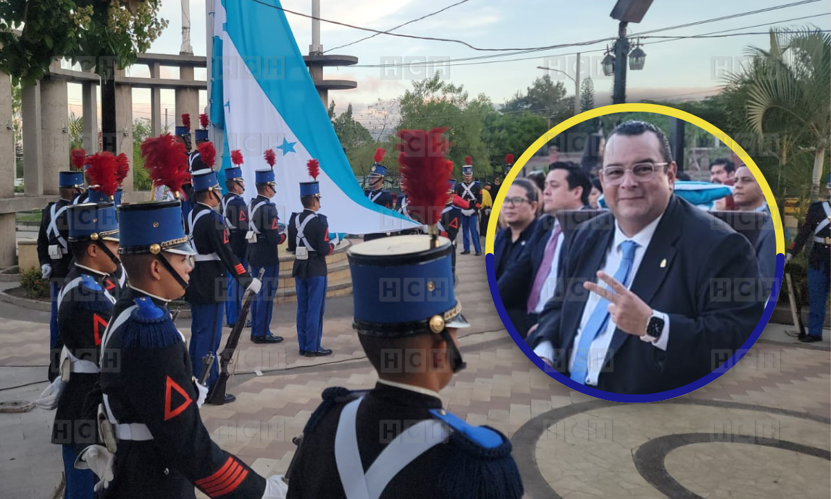 El alcalde de los capitalinos Jorge Aldana iza el Pabellón Nacional en la Plaza de Las Banderas en Tegucigalpa.
