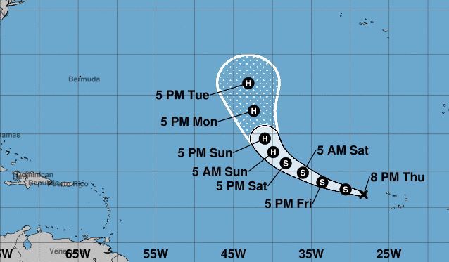Margot tiene actualmente vientos de 65 km/h. Se espera un fortalecimiento constante y el NHC pronostica que la tormenta se convertirá en huracán durante el fin de semana.