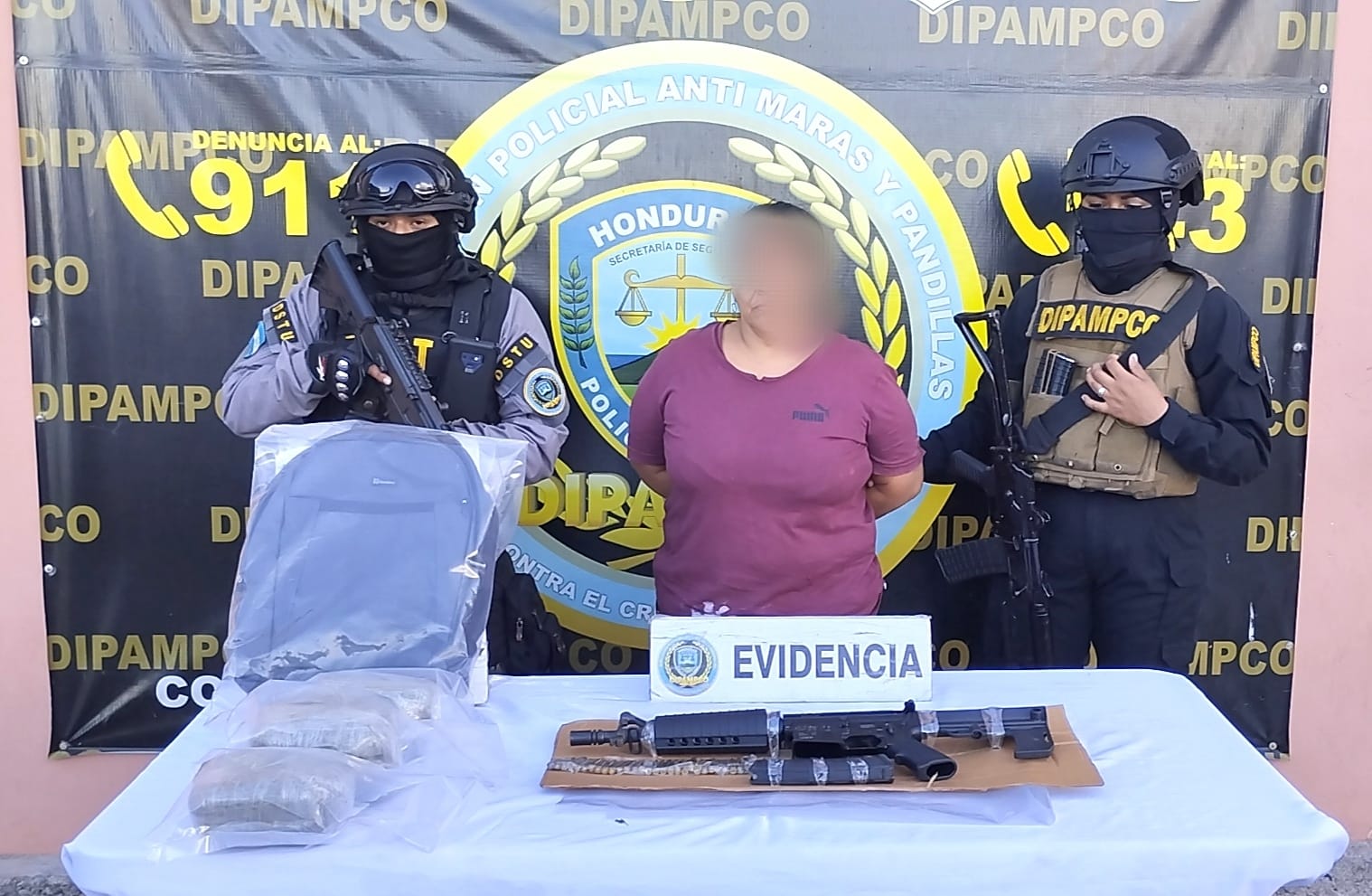 La fémina ha sido identificada como Miriam Janeth Ramos Lagos de 56 años, conocida con el alias de La Muralla a quien se le decomisó un fusil de asalto AR-15 con su respectivo cargador y municiones además de varios paquetes dobles que contienen en su interior hierba seca supuesta marihuana la cual procesaban para luego su distribución.