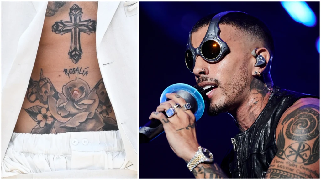 Justo antes de entonar el verso «cómo me miran tus ojos, la bellaquera revienta», el famoso señaló el tatuaje que tiene sobre el ombligo, bajo una cruz, y que no es otro que el nombre de Rosalía.