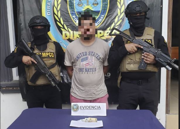 De acuerdo a la Policía, la persona detenida es conocido como «El Gorila» es el encargado de cobrar la extorsión en la colonia Las Mercedes.
