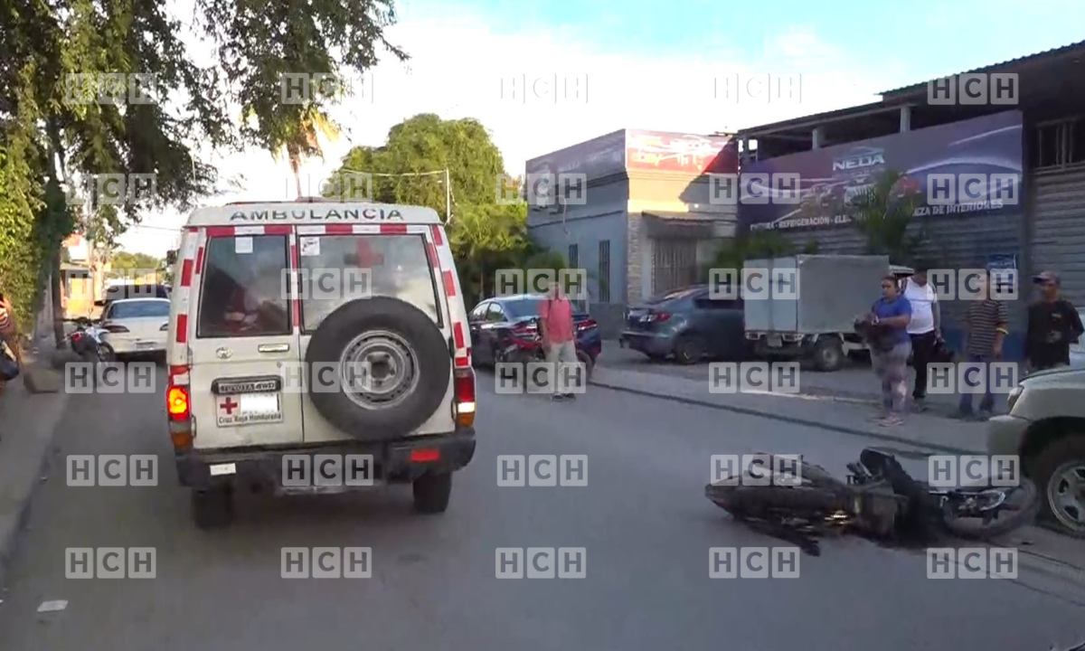 Paramédicos de la Cruz Roja Hondureña le brindan atención a la víctima, y en los próximos minutos será trasladado hasta un centro de asistencial de la ciudad de San Pedro Sula.